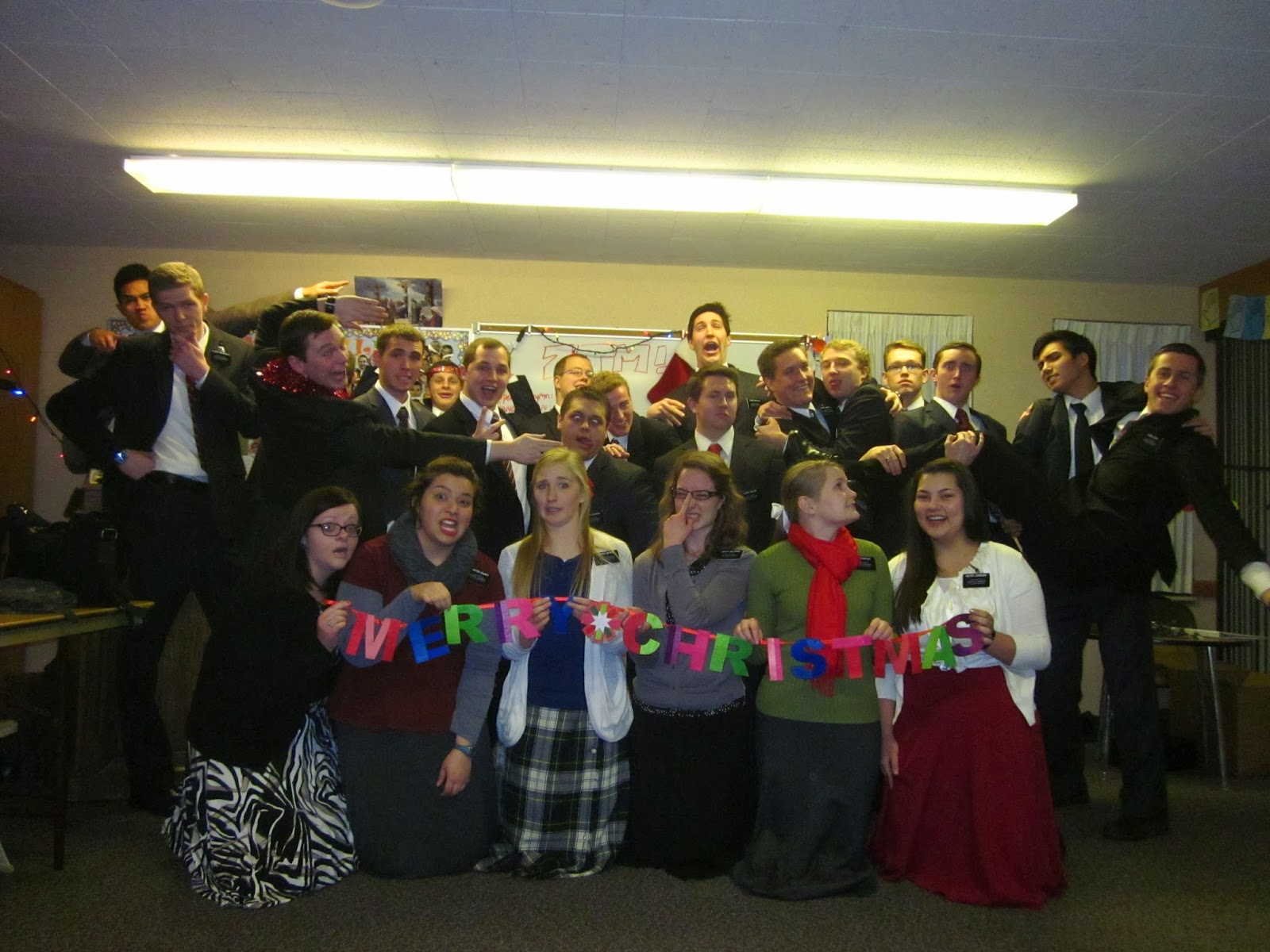 We had our Christmas conference with our mission president which was amazing. Plus there was a talent show at the end and I'm pretty sure the really funny ones weren't supposed to be funny. ha ha it was such a gong show! President Manion is great! even though he shut down our basketball against the high school team. He's not too hot on basketball right now because he just sent an elder home with a torn acl, not sure how he did that playing missionary basketball but whatever. So we countered with just having them come to our pday ha ha so we will play them. we just can't lose or we will be the laughing stock of Edmonton. But I'm fairly confident that we will beat them.